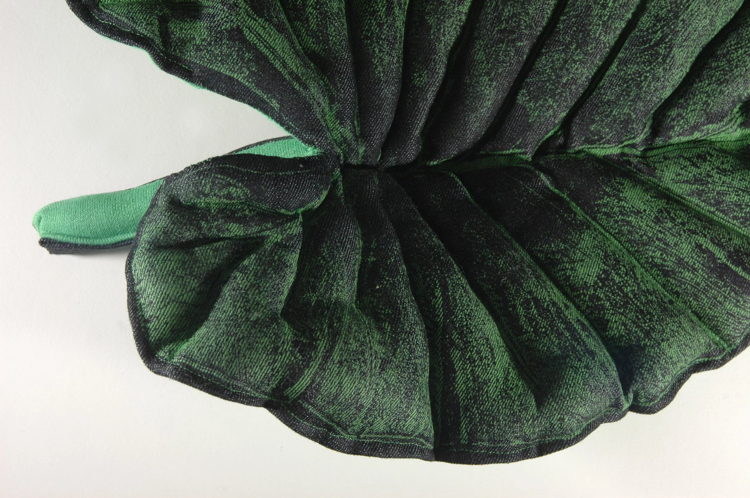 ‘Elephant ear’ is a member of Colocasia a genus of flowering plants in the family Araceae, native to Southeast Asia and the Indian subcontinent. The plants are widely used in tropical gardens, containers, and as houseplants. They have spectacular, large foliage. This stuffy was created for PLUSH: A Stuffed Portfolio which was accepted to and displayed at the 2014 Mid-America Print Conference in Detroit, Michigan.